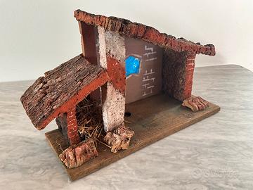 Set composto da una capanna natività, con base in legno e struttura capanna in sughero. Misure: base cm.35x13, altezza cm.22