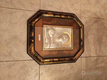 vendo capezzale Madonna originale comprato anni 90 in gioielleria con certificato dietro laminato argento 925.Dietro è un po' usurato dal tempo ma integro.
