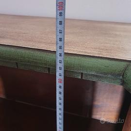 Mobiletto in legno massello, con sportelli, capiente, adatto a televisore, in un ingresso, colorato.
