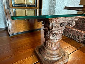 Grande e pregiato capitello in maiolica antichizzata, firmata Paolo Marioni, Firenze anni 80. Artista produttore di opere di alto livello, molto ricercate dai collezionisti, notevole il loro valore. Manifattura di alta qualità, la cui superficie è trattata per dare un effetto più antico e verosimile all’originale. Misure: base cm 36 X 36. H 52cm Viene fornito con un ripiano in vetro temprato (ovviamente amovibile) 80x45 cm, spessore 15mm