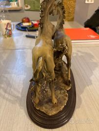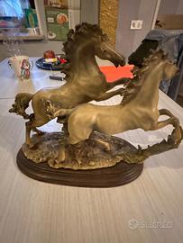 Vendo questo soprammobile di due cavalli in movimento ed è un pezzo da collezione firmato Giuseppe Armani, realizzato in porcellana in base in legno nello stile di Capodimonte. Artista: Giuseppe Armani.