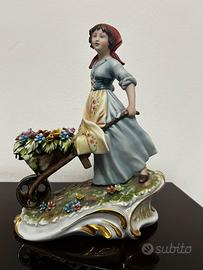 Questa splendida statuina è una creazione della manifattura Capodimonte, firmata dall'artista Corti. Il marchio con la "N" coronata in blu identifica la produzione artistica che si rifà alla storica tradizione napoletana, molto amata per la ricchezza dei dettagli e la lavorazione dei fiori a rilievo.