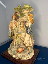 Bellissima scultura in pregiataporcellana di Capodimonte, firmata dall'artistaMiriam(Serie Valentino). Il pezzo raffigura una coppia alla fontana, con dettagli realizzati e dipinti interamente a mano.