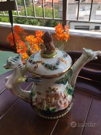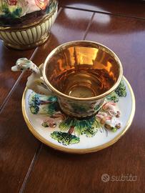 Capodimonte 565 con finiture in oro zecchino in ottime condizioni servizio da 6 tazzine, lattiera e teiera