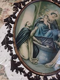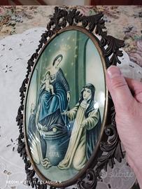 Capoletto antico Madonna di Pompei con cornice in ottone, ottimo stato di conservazione, illuminazione inserita dietro