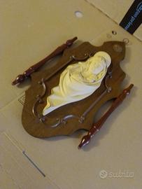 Capoletto d'epoca, Inizi anni 70. Realizzato in legno, con rilievo di madonna con bambino. Dimensioni cm 45x26. Ottime condizioni generali.