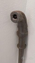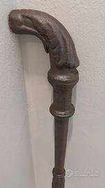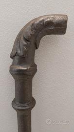 Antico caposcala in ghisa – Fine ’800 Elegante caposcala in ghisa massiccia, risalente alla fine dell’Ottocento, con lavorazione tornita e testa ricurva finemente sagomata. L’elemento presenta le tipiche linee ornamentali dell’epoca – profili morbidi, motivi a rilievo e geometrie equilibrate – che lo rendono un pezzo autentico di arredo architettonico storico. Originariamente utilizzato come terminale di corrimano in edifici signorili o scale interne di palazzi dell’epoca, oggi è ricercato come elemento decorativo da collezione, per restauri o per progetti di interior design dallo stile industriale, classico o vintage. La ghisa mostra una patina scura uniforme, naturale, senza ritocchi moderni: segno di un invecchiamento autentico e non forzato. Strutturalmente solido, con buona presenza visiva. Ideale per: restauro scale d’epoca, decorazione d’interni, collezionismo architettonico, progetti scenografici e design industriale.