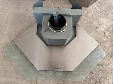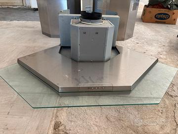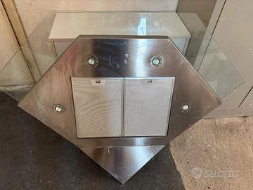 Cappa da cucina angolare in acciaio inox, con finitura in vetro temperato, tre velocità di aspirazione, due punti luci a led, marca Faber. Niente spedizione perche’ sono state calcolate e troppo alte.