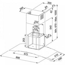 FRANKE FGC 925 XS Franke Cappa a parete FGC 925 XS finitura inox satinato da 90cm con vetro curvo.