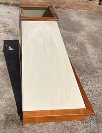 Cappa da cucina con rifiniture in legno, color crema, segni di usura visibili in foto ma funzionante.