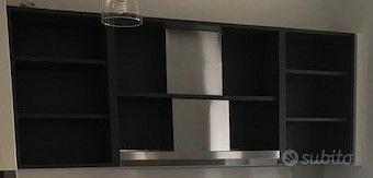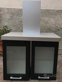 Cappa Faber 60 cm (Dovrebbe essere il modello Comfort Stilo) e due pensili a tre ripiani con anta in vetro satinato (misure H 100 x L 45 x P 45) color noce scuro.