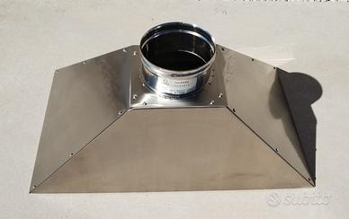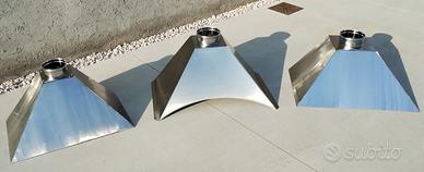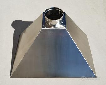 Cappa per barbecue a base rettangolare, predisposta per fissaggio a parete, realizzata in Acciaio Inox AISI304 sp.8/10 con finitura satinata tipo ScotchBrite