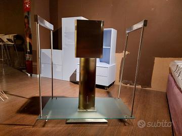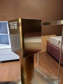 CAPPA ISOLA INOX E VETRO SATINATO, 90 X 50 X H. 100 USCITA FUMI SOPRA, COMPLETA DI SUPPORTI LATERALI. NUOVA DA ESPOSIZIONE IN NEGOZIO, IVA INCLUSA, TRASPORTO E MONTAGGIO ESCLUSI.