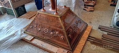 Cappa nuova artigianale fatta a mano in rame e ottone battuto a sospensione pesante per istallazione centrale, tubi con catene interna per appenderla. Oggetto unico e di design. Valore 2900 euro. Vendo causa cliente non pagante a € 2000 + spese di spedizione