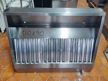 Vendo cappa professionale per ristorazione in acciaio pesante. Filtri a labirinto, misure 120x90. Possibile spedizione in tutta Italia da concordare. N.B. PREZZO INDICATIVO SENZA MOTORE!