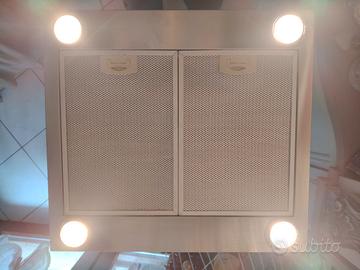 Cappa centrale in acciaio con piano in cristallo. Usata con una piccola scheggiatura del vetro. Ritiro a mano.