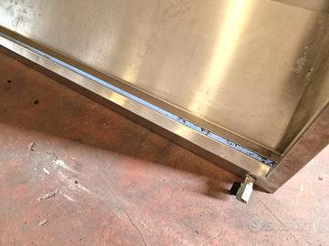 cappa usata di aspirazione per spiedi, si tratta di una cappa a parete SENZA filtri ma solo con il convogliatore dei fumi, dispone anche di canalina di recupero condensa con rubinetto di scarico. dimensioni: 130X130cm h40cm