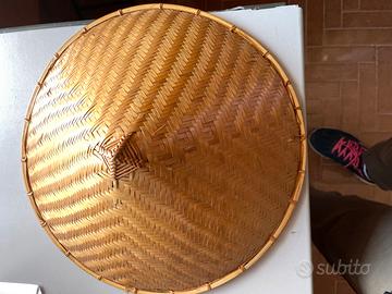 Cappello orientale decorativo in bambù intrecciato , stile asiatico tradizionale ( tipo cappello da risaia).