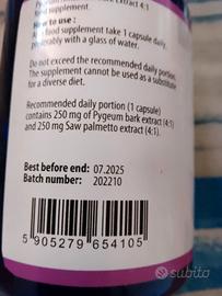 Pigeum africanum bark+saw palmetto estract 4:1. 120 capsule. dicono adatto prostata. nuovo con sigillo.