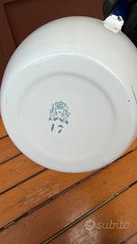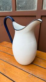 Caraffa bianca metallo smalto bianco blu vintage
