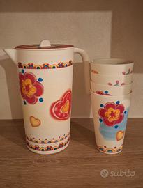 bellissimo set caraffa e bicchieri della THUN in resina simil ceramica. leggerissimi e resistenti. Nuova mai usata. con la sua scatola.