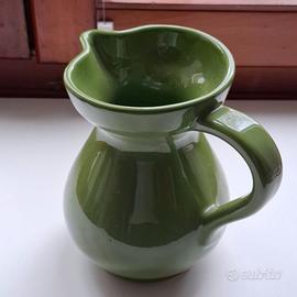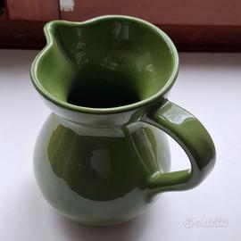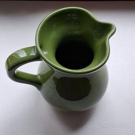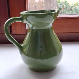 Splendida caraffa in ceramica lucida con una raffinata finitura color verde oliva/bosco. Il design è classico e bombato, ideale per servire acqua, vino o come vaso decorativo per fiori freschi (stile Shabby Chic / Country).