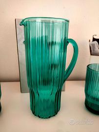 Caraffa brocca per l'acqua originale Brandani. Nuova, mai utilizzata ancora nella scatola. "Una linea coloratissima nata per arricchire le tavole di ogni momento, dai party alla quotidianità. La caraffa dal vetro colorato capace di diffondere allegria e spensieratezza. Le righe sulla superficie rendono peculiare lo splendere delle loro tonalità, riflettendone ogni sfumatura in un gioco di luci ed eleganza dall’anima moderna ed entusiasta! " Colore turchese/verde acqua Misure caraffa brocca 16 cm larghezza (col manico) 22,5 cm di altezza.