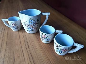Set Caraffa ceramica Albisola + tre boccali con manico.