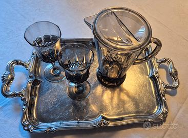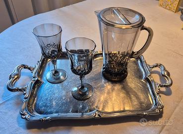 CARAFFA CON COPERCHIO E DUE BICCHIERI A STELO