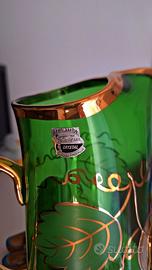 Servizio da giardino in cristallo verde di boemia marcato "CECHOSLOVAKIA" con ricami in oro fatti a mano; set con 6 bicchieri. Vintage inizio anni '60.