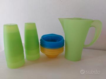 SET CARAFFA + BICCHIERI + CIOTOLE IN PLASTICA COLORATA ADATTI A FESTE PER BAMBINI - USATI MA TENUTI BENISSIMO