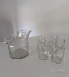 vendo caraffa con otto bicchieri in vetro martellato murano vintage