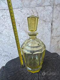 Caraffa in cristallo in stile Art Déco. Realizzata in cristallo, associato alla storica manifattura belga Val Saint Lambert, e colorazione gialla. Si può fare ritiro a mano su Milano.
