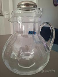 Elegante e capiente caraffa in cristallo con portaghiaccio leggermente lineata come da foto.