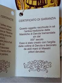Caraffa in maiolica Deruta, con certificato di garanzia, creata per convegno AITBM (Associazione tecnici della birra e del malto) di Firenze in collaborazione con CERB (Centro di eccellenza ricerche sulla birra). Dimensioni: - altezza 11,5 cm; - larghezza alla base 12,5 cm; - larghezza bocca 9 cm; - capacità 500 ml. 15 euro. Spedisco. LEGGI I MIEI ANNUNCI.