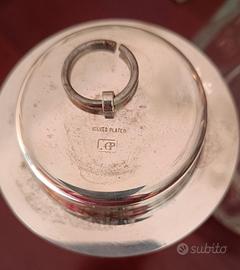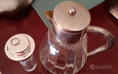 Caraffa in Silver Plated e Vetro con cilindro in vetro e tappo in Silver, con funzione di porta ghiaccio per bevande fredde e di acqua calda per bevande calde . Alta cm 24