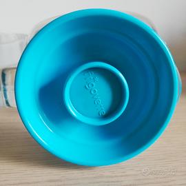Caraffa in vetro trasparente con manico e coperchio in plastica. Capacità 1 litro. Misura 7,5x7,5x22,5 cm. Ottimo stato, nessun difetto.