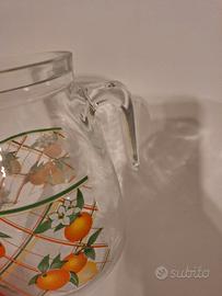 -Caraffa in vetro per acqua o altro -Con fantasia di frutti -Con tappo in plastica -Misure : 31 x 31 cm -Nuova