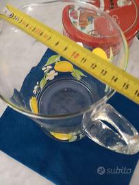 Bellissima caraffa in vetro,mai utilizzata Ideale per servire limoncello o bevande estive. Adatta a qualunque occasione.