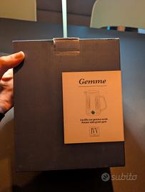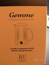 caraffa gemme IVV glassmakers con gemma verde smeraldo + 6 bicchieri in vetro con gemma colorata all interno (blu, grigia, rosa, verde, ambra e rubino)