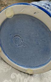 Corpo in ceramica pesante con smalto Blu Cobalto intenso e decorazioni a rilievo in bianco/azzurro chiaro.