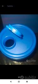 1 litro, ideale per olio, ma va' bene per ogni liquido. Facilmente trasportabile perché chiudono ermeticamente sia coperchio che tappo. Nuova