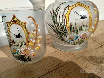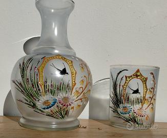 Splendida caraffa con bicchiere in vetro dipinto a mano !