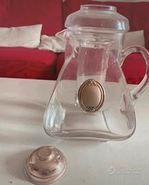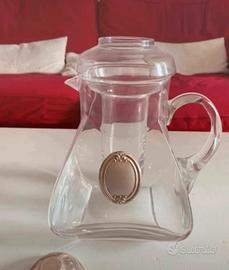 Caraffa vintage in vetro con contenitore porta ghiaccio per mantenere fresche le bevande. Placchetta in acciaio.