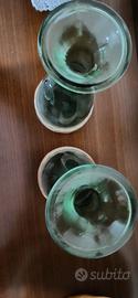 Coppia di caraffe vintage anni '60/'70 Italian Empoli glass, in vetro e paglia per vino/olio con base ricoperta di paglia come nuove prive di sbeccature