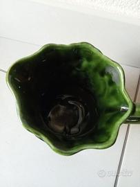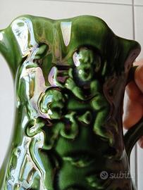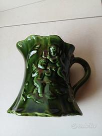 caraffina vintage in ceramica smaltata verde con Cherubini a sbalzo