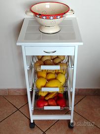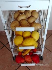 Tre cassetti grigliati in acciaio con maniglia in legno per frutta, verdura ecc.