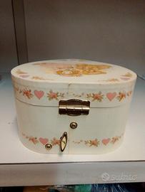 Carillon con profumo Iris 100 ml spray e 2 tazzine Cinesi decorate, confezione a forma di cuore Vintage