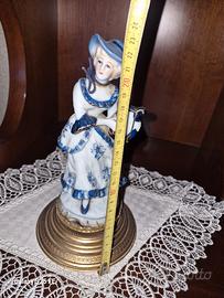 carillon funzionante alto 23 cm in ceramica bianca azzurra oro..