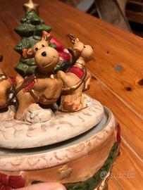 Carillon in ceramica gruppo renne e babbo natale rotante